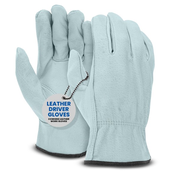 Rugged Blue Leather Driver Gloves | Color Coded Cowhide Gloves | Economy Grade Leather Work Gloves with Keystone Thumb & Shirred Elastic Back | L