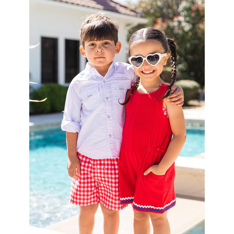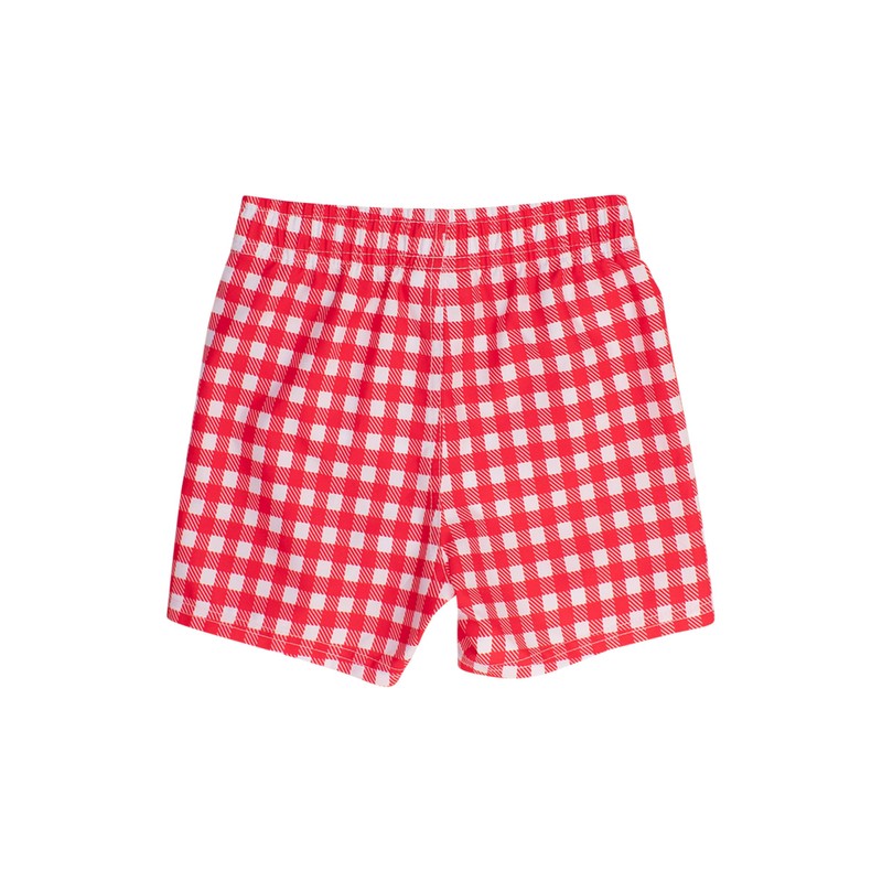 RUGGEDBUTTS Boys UPF50+ Sun Protection Gingham Swim Trunks - Vintage Red Gingham, 7