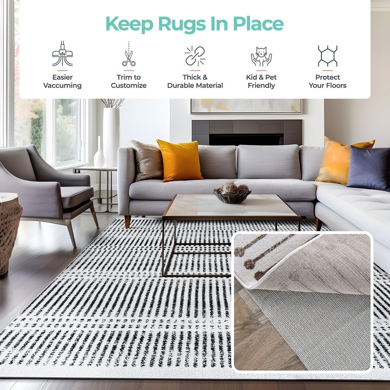 - Durable Material: Made from 100% PVC for durability and longevity, this rug pad is designed for daily use, providing a non-slip surface that keeps your rugs securely in place.