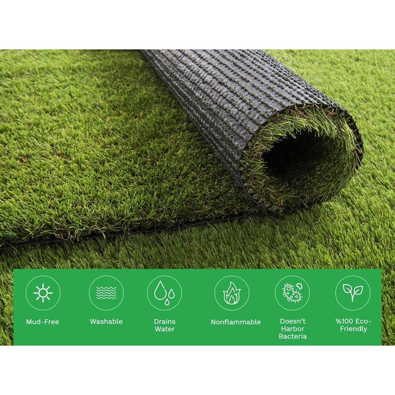 • 1 inch Grass Height | UV Protection , Fire Resistant | Features holes on the backing allow water drainage | Shipped Rolled Instead of Folded Which Causes Creases Hard To Flatten | Colorfast | Stain Resistant | Custom Size For Your Need | Natural Look | Great Choice for Patio Stairs , Backyard Stairs and Indoor Settings