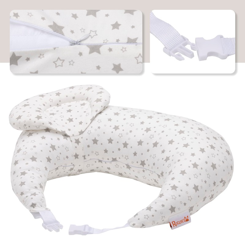 RUGUIES- Nursing Pillow- Breast Feeding Pillow Baby- Ergonomic and Adjustable Breastfeeding Pillows-Additional Anti-reflux Cushion to Elevate the Baby's Head-Double Washable Cover 100% Cotton.