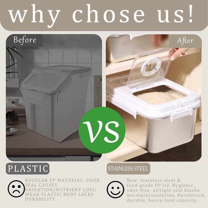 - 【Airtight & Moisture-Proof Design】 Advanced seal locking lid with silicone gasket prevents moisture and odors from ruining pet food or grains, ensuring long-lasting freshness.