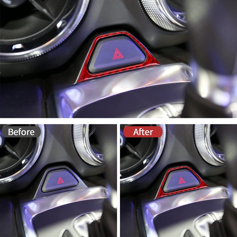 RUIANTE Compatible with Carbon Fiber Center Console Warning Button Panel Double Flash Light Trim Sticker Accessories for Camaro 2015 2016 2017 2018 2019 2020 2021 2022 2023 2024 (1pcs Red)