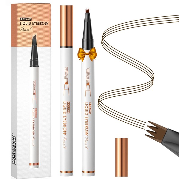 - 【EASY TO CREAT NATURAL-LOOKING HAIR STROKES】Eyebrow pen for women has 4-prong precision-fork-tip applicator makes it incredibly easy and smooth to create natural-looking hair strokes in just a few strokes and great blends your natural brow color beautifully without clumps. In addition enhance hairlines, eyelashes, and beards effortlessly. So easy to use that even someone with limited makeup skills, a little practice goes a long way, you'll effortlessly create eyebrow look fuller naturally.
