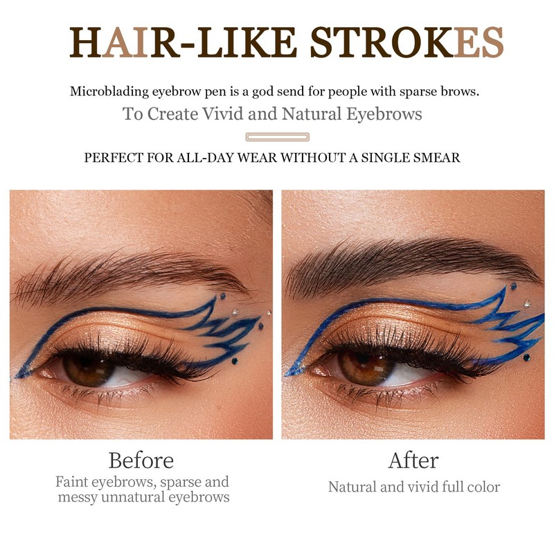 - 【LIKE YOUR REAL NATURAL BROWS】Ruicen upgraded microblading eyebrow pen is a god send for people with sparse brows. Designed to transform your brows with natural fullness. Eyebrow microblading pen allows you easily fill, shape and define brows. SUPER QUICK and EASY to achieve ultra-precise, defined & natural-looking full brows in seconds, resembling 3D natural real hair! Eyebrow pencil light brown is for light brown hair.