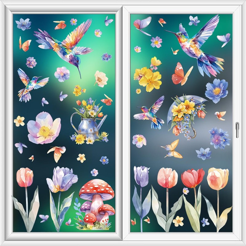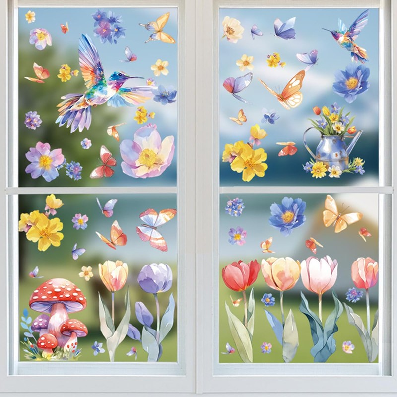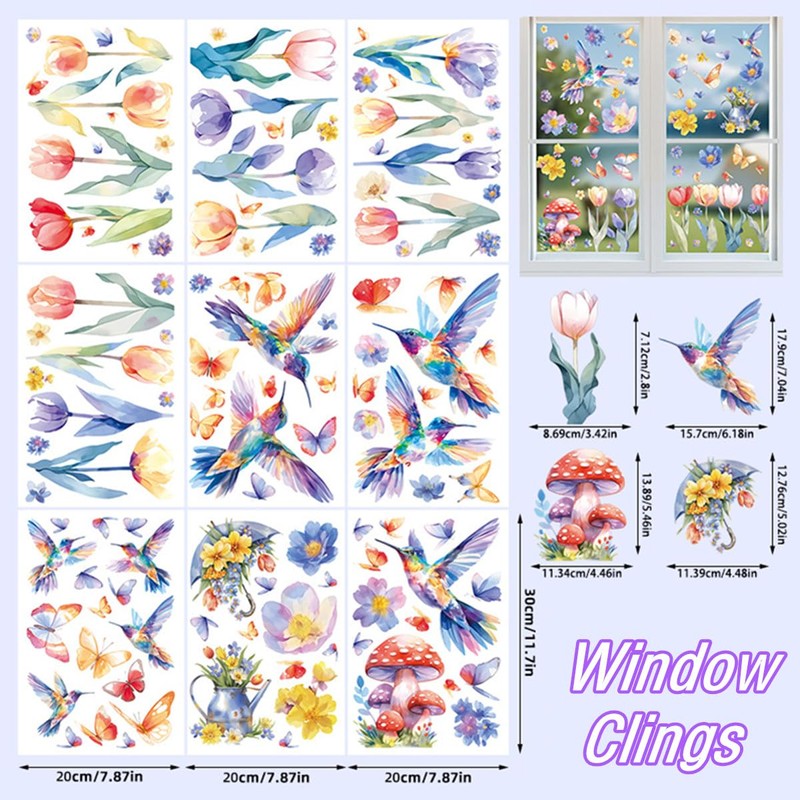 - 【Wonderful Decoration】 🌺 Designed with multiple exquisite patterns, such as various wildflower, tulip, butterflies, mushroom and hummingbird, etc. Different sizes & shapes mixed, enough to meet various decorative needs. They can decorate your windows more aptly and create a beautiful spring and summer.