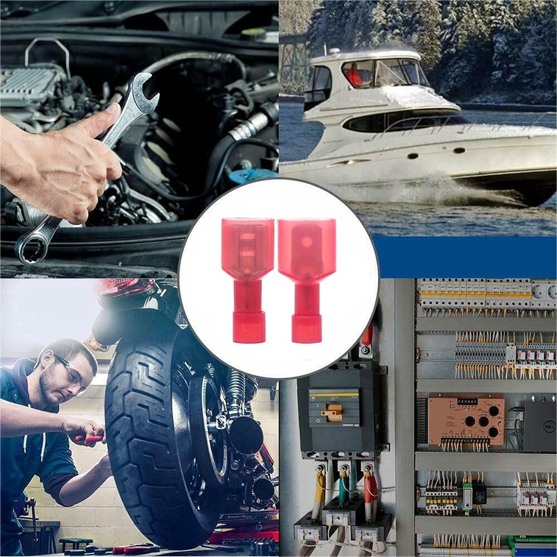 Ruidee 100Pcs Spade Terminals 22-16 AWG Fully Insulated Nylon Male/Female Quick Disconnect Electrical Wire Crimp Terminal Connectors(Red/UNSH)