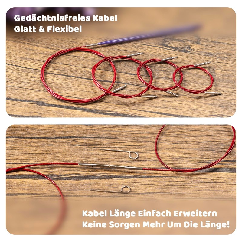 • [COMPREHENSIVE KNITTING ACCESSORIES]:Our kit includes 4 cables (38cm, 58cm, 78cm, 98cm), stitch markers, end caps and more - everything you need to knit. We offer a purchase link for replacement cables! You can find this link in the product description text below!