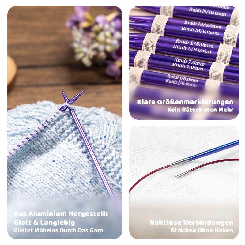 RUIDI Circular Knitting Needles Set, Long Aluminium Interchangeable Circular ...