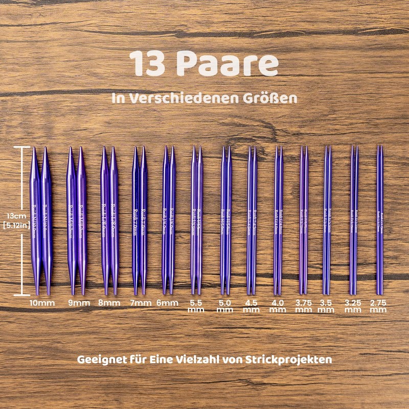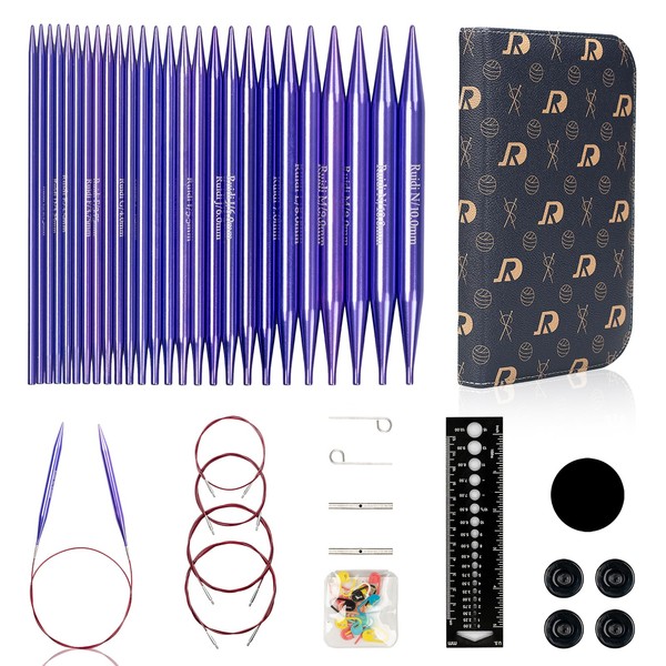RUIDI Circular Knitting Needles Set, Long Aluminium Interchangeable Circular Knitting Needles Set with Case & Accessories, 13 Pairs Circular Knitting Needle Set (13 cm) in Sizes from 2.75 mm to 10 mm