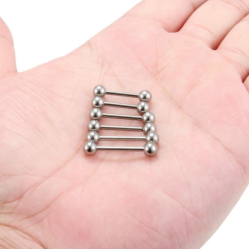 Ruifan Grade 23 Titanium Externally Threaded Nipple Shield Barbell Tongue Ring Bar Body Piercing Jewelry 14G 12mm 14mm 16mm 6PCS