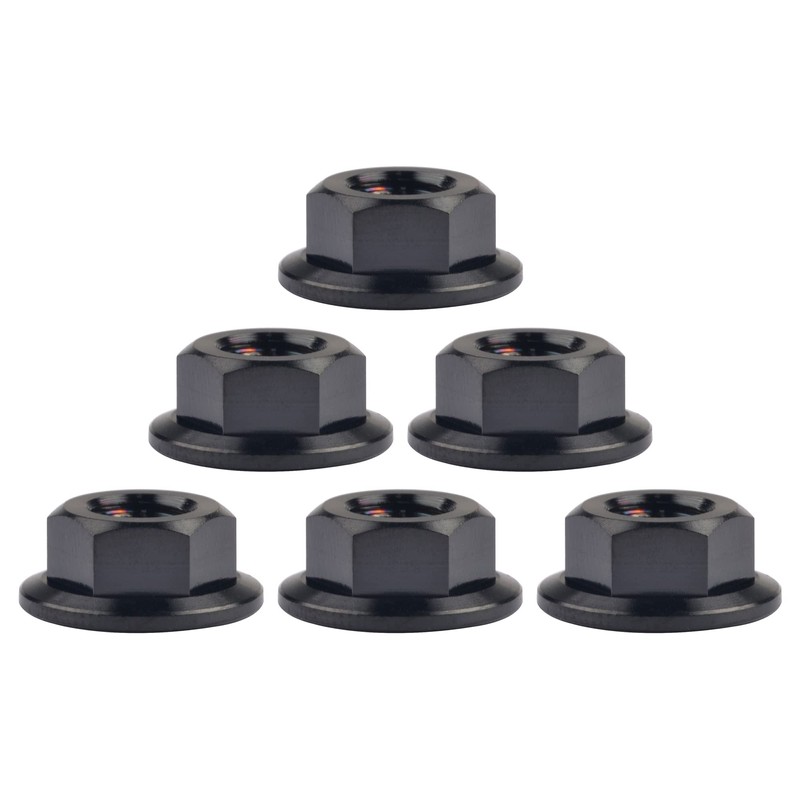 Ruifu Titanium Alloy Flanged Nuts M5 M6 6 Pack (M6, Black)
