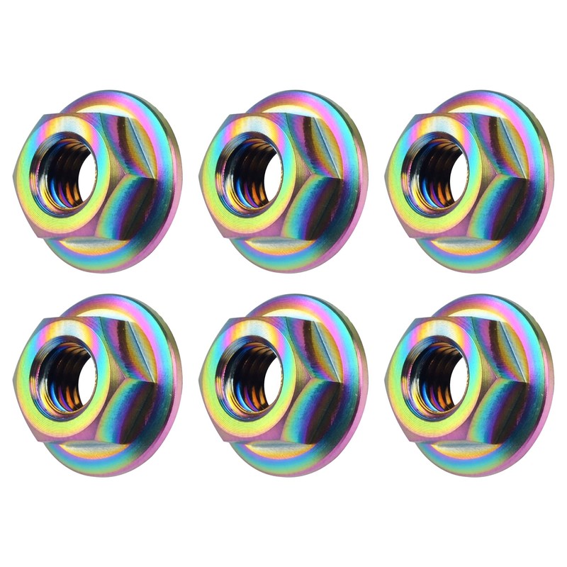 Ruifu Titanium Alloy Flanged Nuts M5 M6 6 Pack (M6, Rainbow)