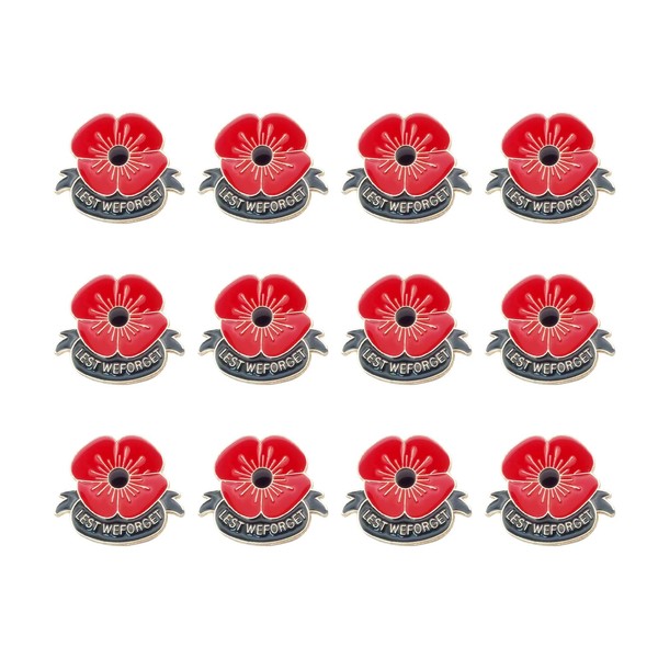 RUIFUU 12Pcs Poppy Pins Veteran Pin Poppy Flower Enamel Lest We Forget Memorial Pins for Men Women Veterans Day Remembrance