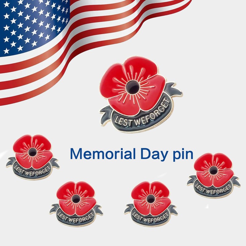 - [Lest We Forget] - The memorial day pins, designed in the shape of poppy, symbolizes courage and sacrifice on the battlefield. Lest we forget reminds us not to forget the veterans and fallen soldiers who defended the freedom of the country and the people.