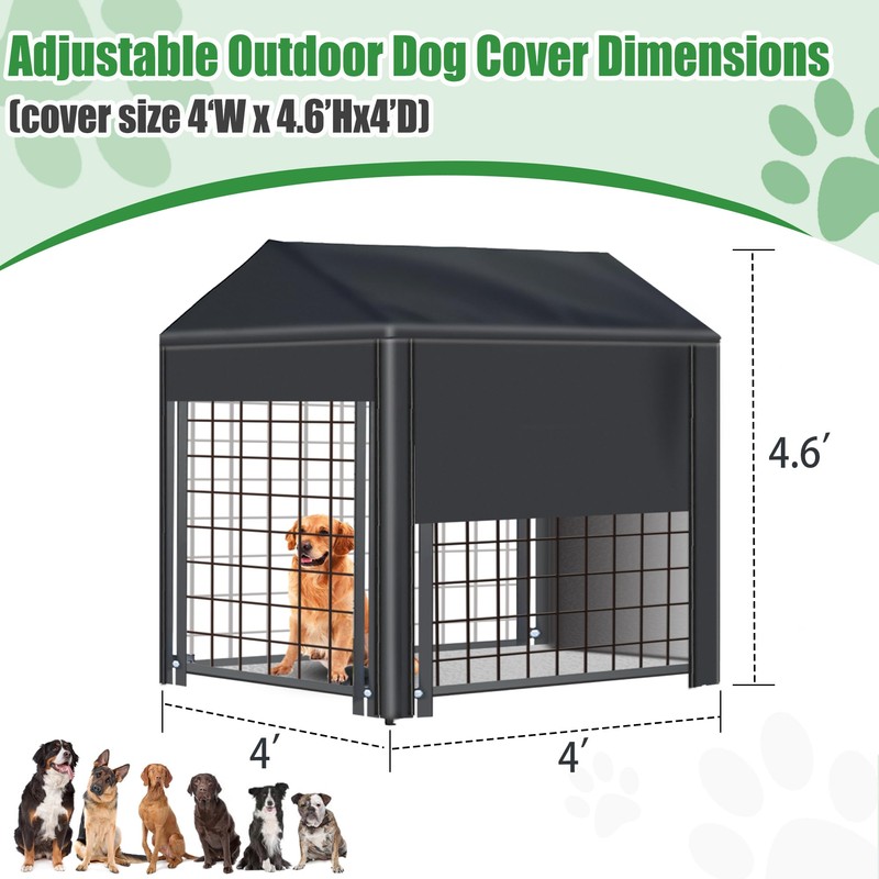 RUIHONG Outdoor Dog Kennel Cover 4'Dx4'Wx4.6'H Black Heavy-Duty Waterproof Dog Kennels Cover - Length-Adjustable Large Dog Kennel Covers (Cover Only)