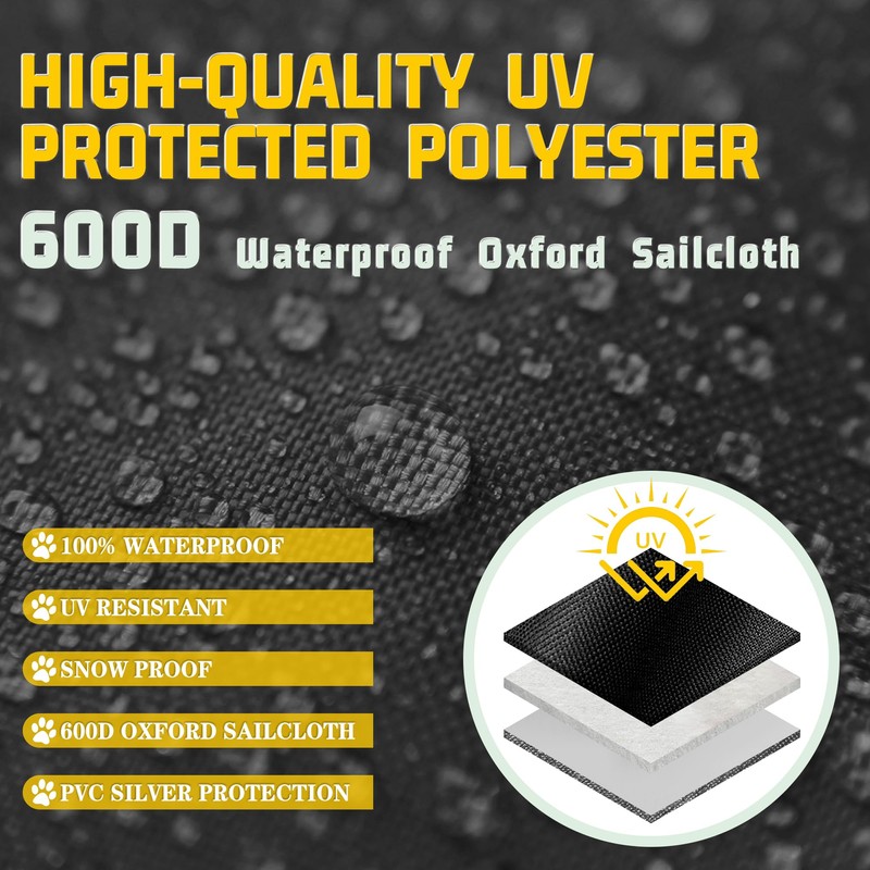 - HIGH QUALITY MATERIAL: The outdoor large dog kennel enclosure cover is made of high quality 600D heavy duty oxford fabric, which can effectively block UV rays. The inner layer is coated with silver PU for superior water and wind resistance. The dog crate cover is durable and easy to clean.