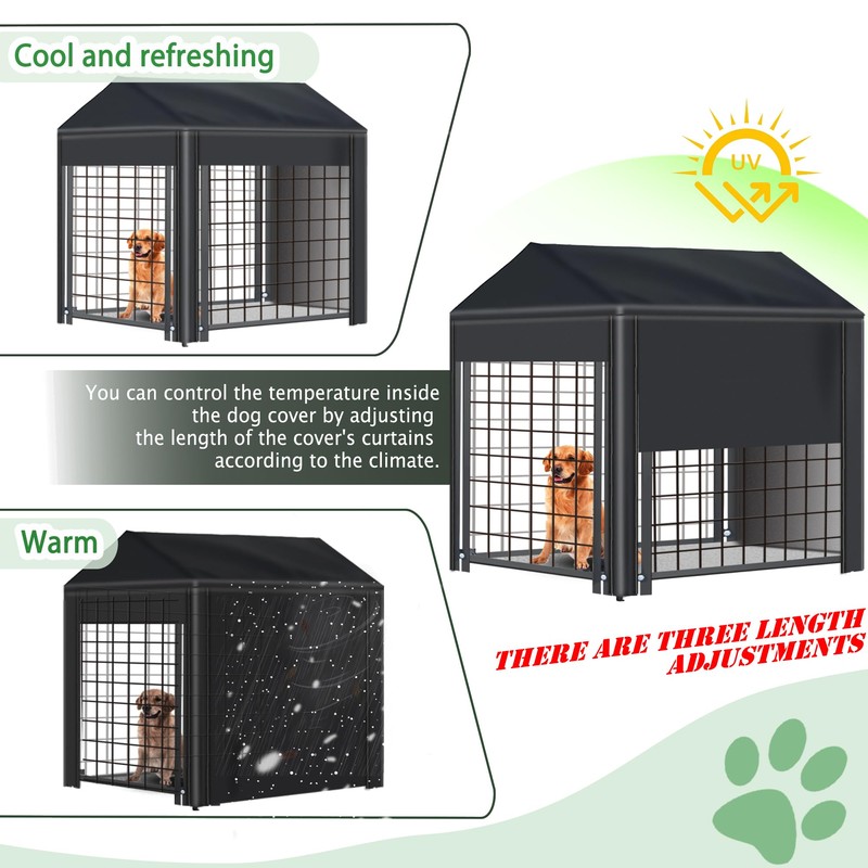 - Protective design: Prevents rust and extends the life of the kennel! The dog house cover is designed to wrap the four support posts of the dog cage with cloth. The bottom of the pet crate is secured with snap fasteners to keep the cover firmly in place even in strong winds.