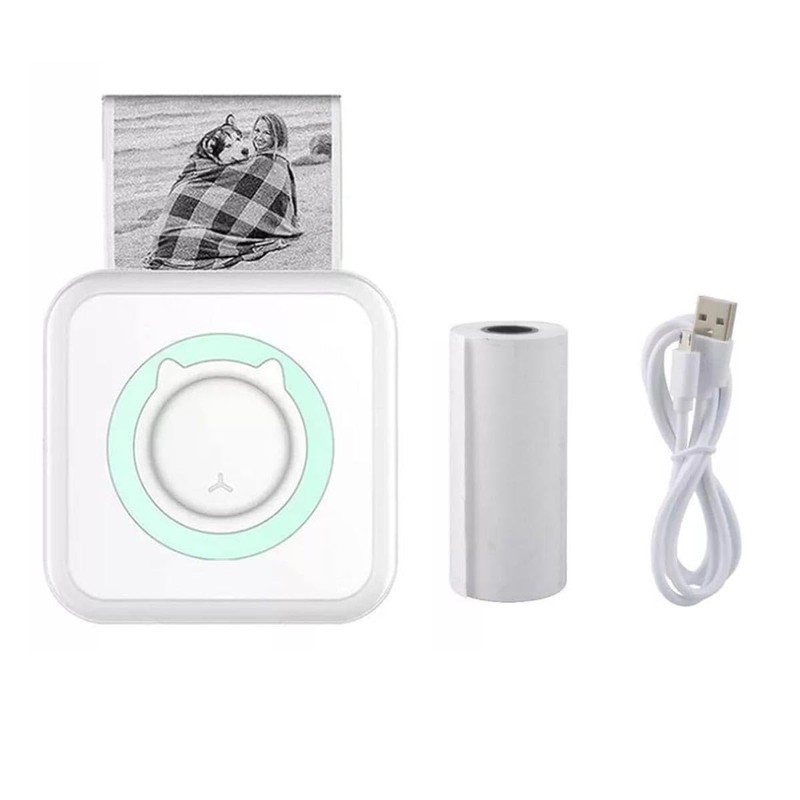 RuiJOTWAT Mini Printer, Mini Thermal Printer, Mini Photo Printer, Mini Sticker Printer, Wireless Printer With 1 Roll Of Printing Paper, Suitable For School, Home, List, Diy Graffiti, Green