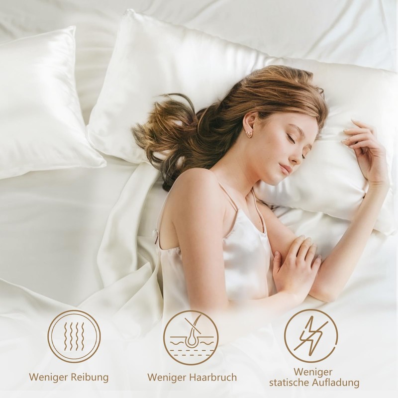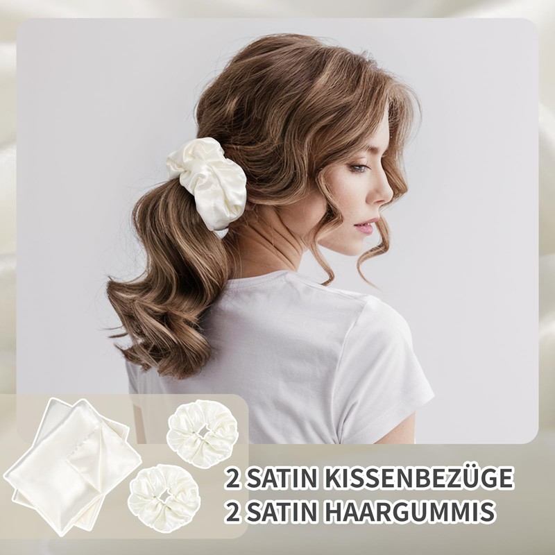 - Experience restful beauty sleep and wake up to supple, tangle-free hair - with the RUIKASI Satin Pillowcase Set. This elegant set contains 2 satin pillowcases 40 x 80 cm and 2 matching satin hair bands, specially designed for curly and long hair.