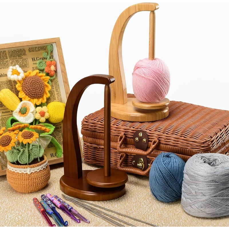 Ruikcoll Wool Unwinder, Wool Reel Rotating Yarn, Winder Magnetic Yarn Spool Holder, for Knitting Accessories Gifts and Crochet, Yarn Winder Yarn Roll Holder (Wood)