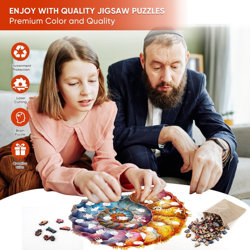 - UNIQUE WOODEN PUZZLE: Unlike traditional puzzles, Our wooden puzzles are cut into unique shapes, Some of the puzzles are designed as sea animals and plants. Original and vivid hand-painted art, which is fascinating and worthy of being used as an aesthetic home decoration