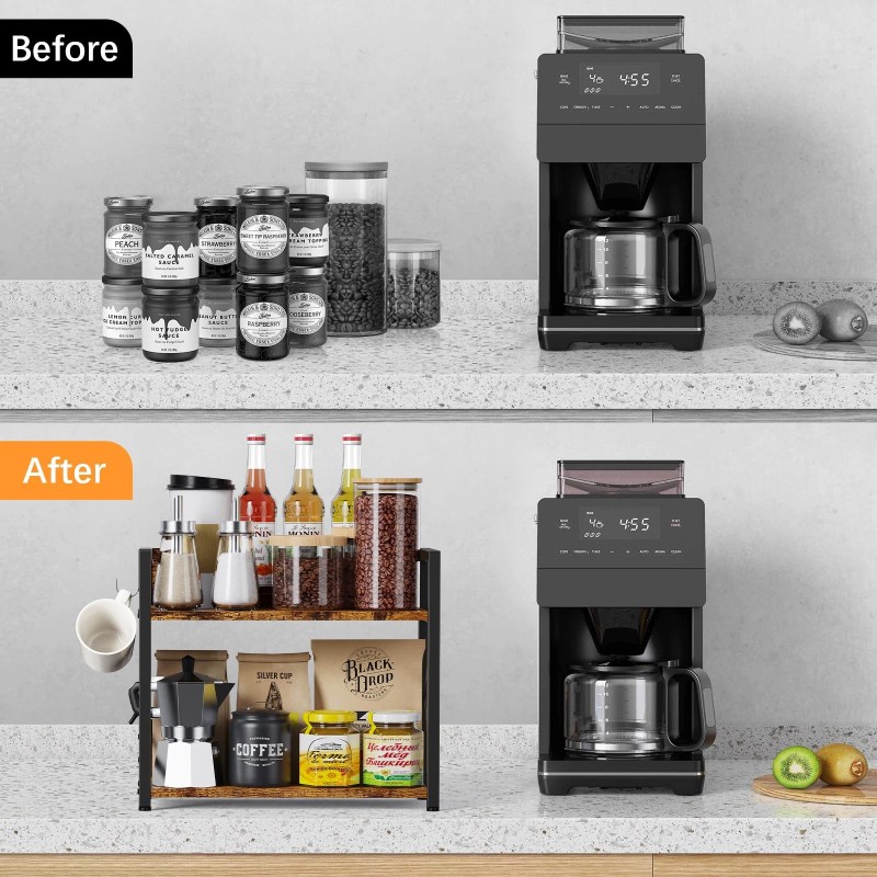 Ideal Gift Choice:With this 2-tier counter shelf for kitchen, everything lined up perfectly and Say goodbye to the chaos countertop! So this coffee bar organizer is a perfect gift to yourself and but also to your friends and parents. Be it a housewarming, Thanksgiving day, Christmas, birthday party, or special occasion.