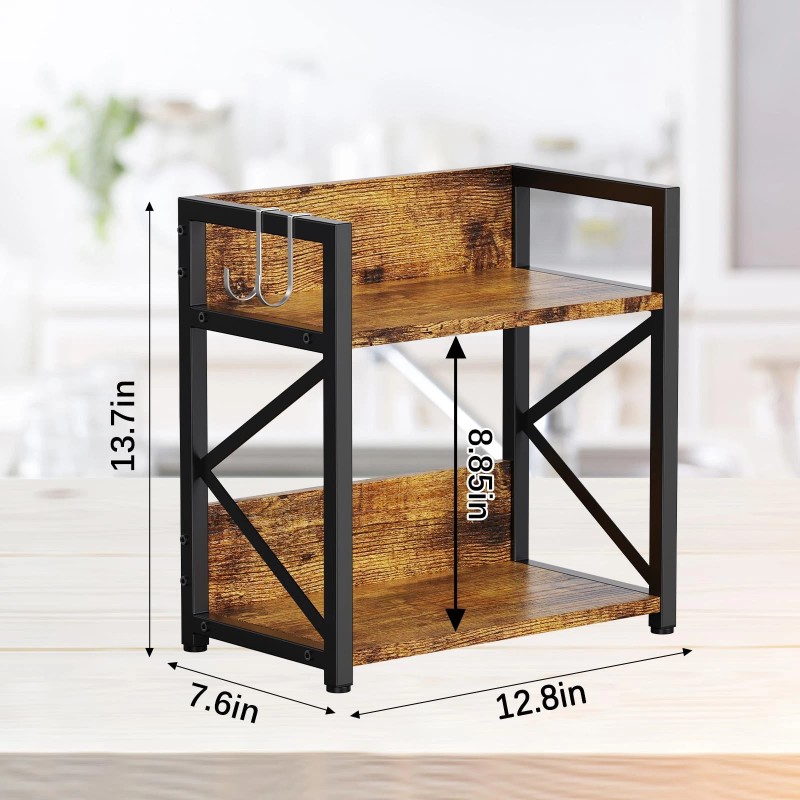 Sturdy Design:Coffee bar organizer shelf is combined with metal frame and thick board ensuring durability, the X design on the sides enhance the stability. Kitchen counter shelf has a back rail so it doesn't have to be placed against a wall to keep things from falling off the back. We also provide S-hooks to add more storing space.