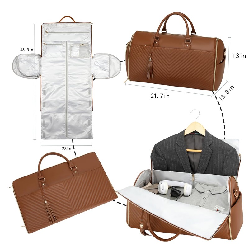 RUIMA Convertible Carry On Garment Bag - Waterproof PVC Leather with Shoe & Cosmetic Compartments, 47" Wrinkle-Free Hanging System for Business Travel/Weddings, Extended Base Design (Brown)