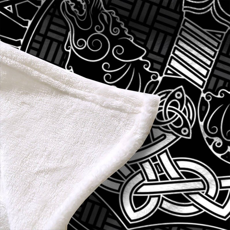 Ruiqieor Viking Cuddly Blankets 150 x 200 cm, Blanket with Viking Dead Rune Motif, 3D Digital Print, Nordic Odin Warrior Sword Axe, Soft Flannel Blanket for Children Adults (#13)