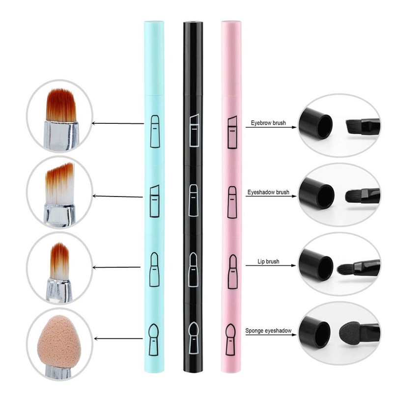 RuishiLinh 3 Pcs Makeup Brushes 4 In 1 Retractable Travel Portable Make Up Brushes-Lip Brush Eyeshadow Sponge Eyeshadow Eyebrow Brush Combination Design Cosmetic Make-up Brush Set
