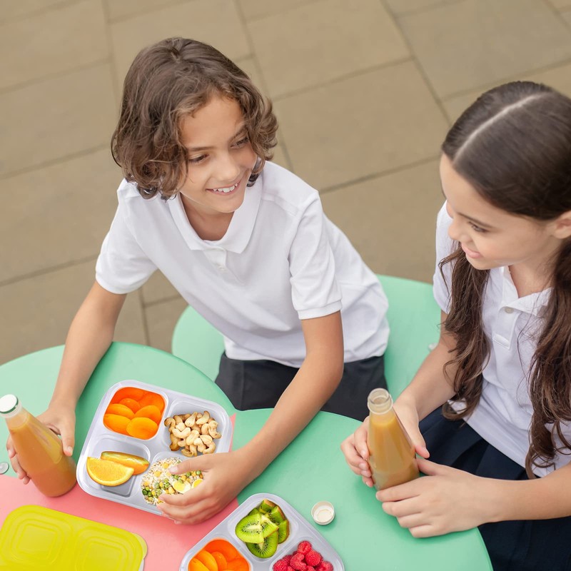 - Package includes: 4-compartment snack box with lids. totally 10 value set, sufficient to store a variety of snacks; the 10 lids are in 5 different bright colors, red, yellow, green, blue and purple, each color of 2 (suitable for kids over 3 years old and adults)