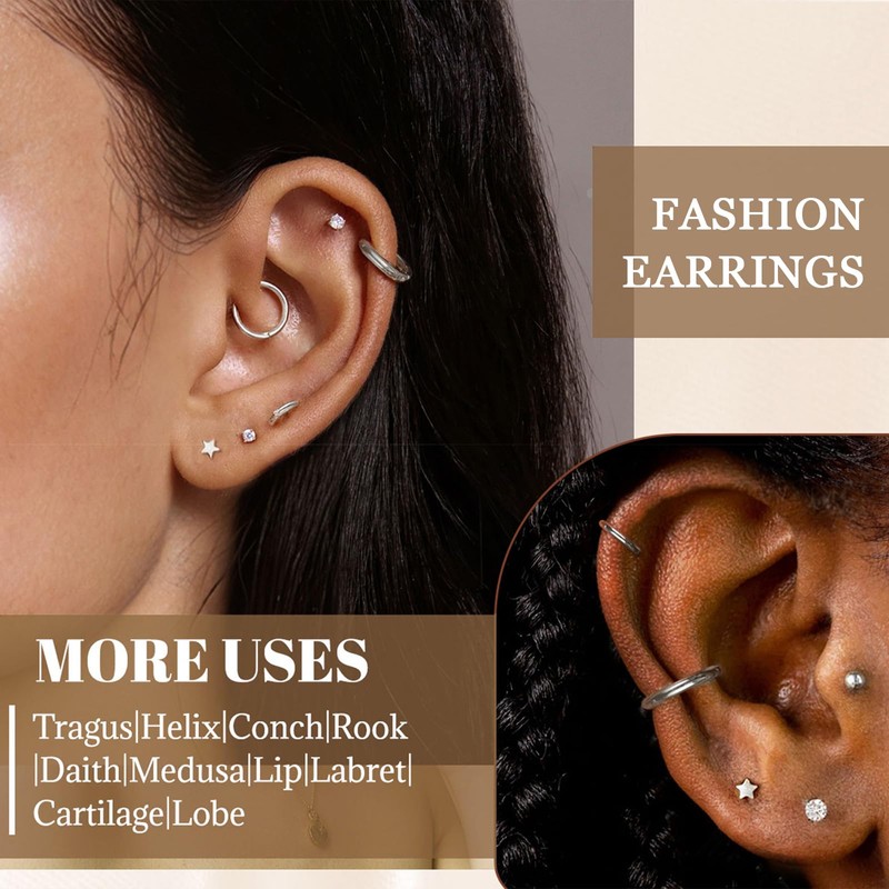 2.Vielfältiges Ohrringset mit 12 Stück: Enthält verschiedene Push-in Stecker mit CZ-Zirkonia, Stern-, Herz- und Schmetterlingsform sowie kleine Creolen und einen Piercing-Taper. Ideal für Helix, Tragus, Conch, Nasenpiercing und weitere Stellen – alles in einem Set!