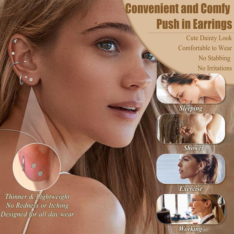 - Einfach anzuwenden dank Push-in-Design: Die flachen Ohrstecker sind ohne Gewinde – Sie brauchen nur leicht zu drücken, um sie anzulegen oder abzunehmen. Der flache Abschluss liegt eng am Ohr an und verhindert das Herausrutschen, ideal für aktive Tage oder beim Schlafen.
