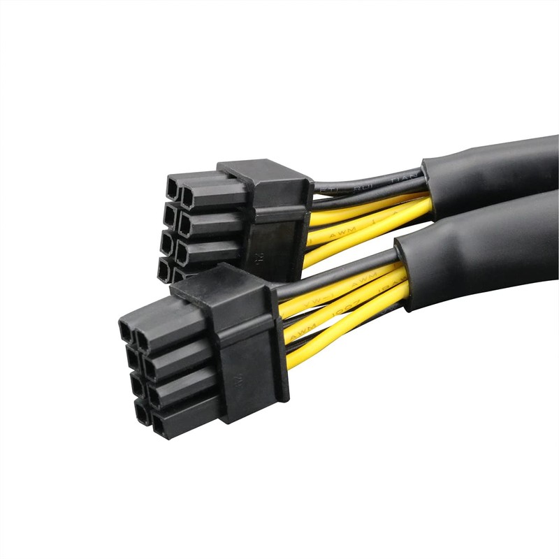 - The product is a CPU power connector with a female head connected to the power supply, and two CPU male heads are inserted into the motherboard.