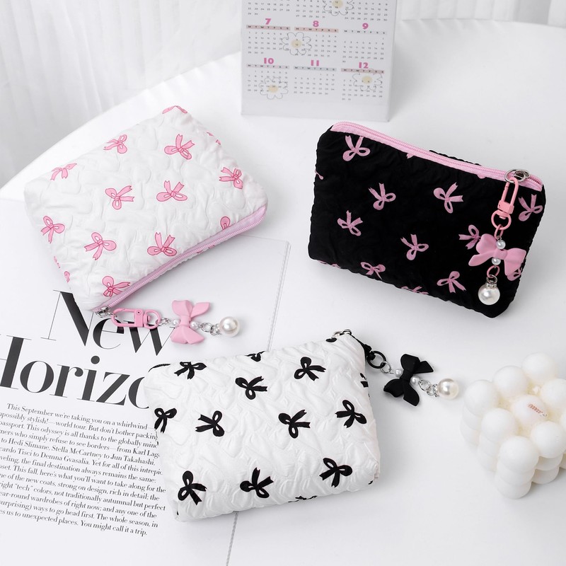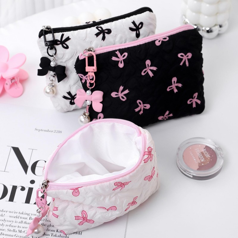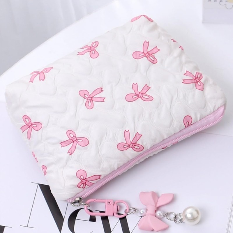 RUIXIAOXI Cotton Quilted Makeup Bag Coquette Accessories Make up Bag Organizer Cute bow Cosmetic Pouch Travel Makeup Bag