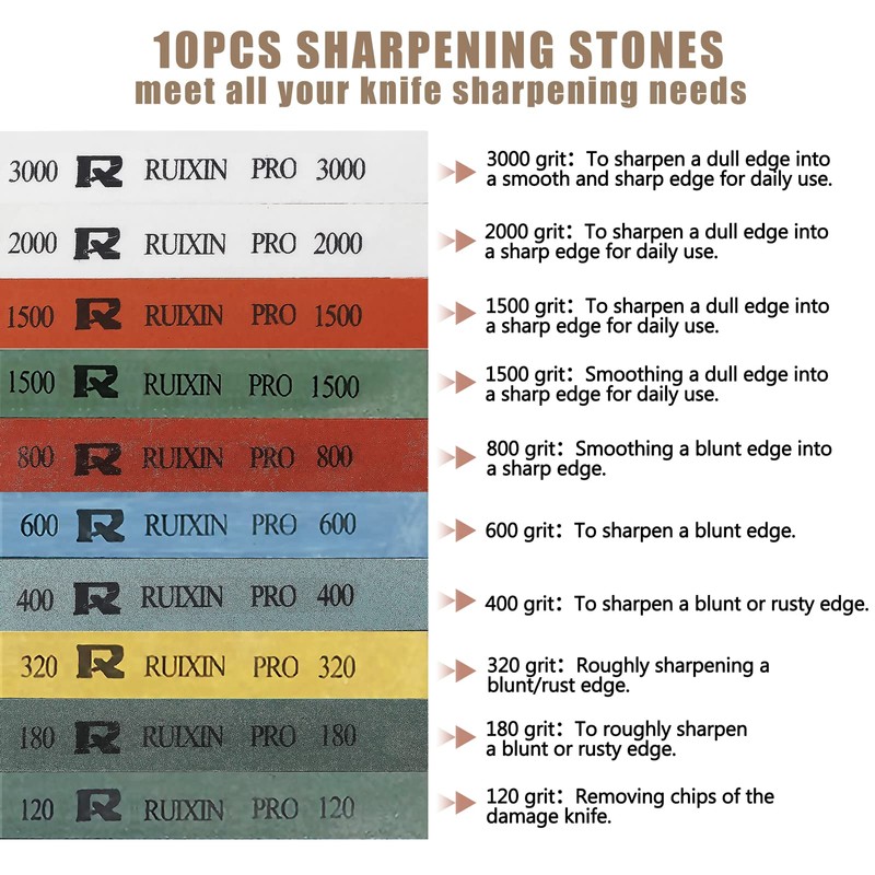 RUIXIN PRO RX-009 Professional Knife Sharpener with 10 Whetstones, 360° Rotation Flip Design Fixed-Angle Aluminum Alloy Kitchen Chef Knife Sharpening Kit Abrasive Holding System Tools