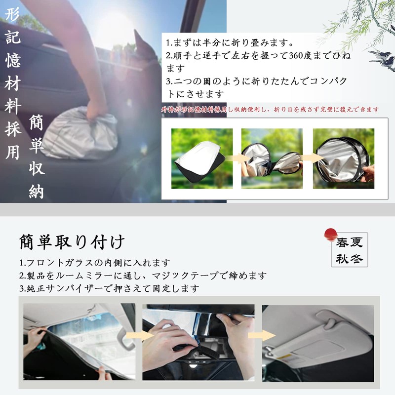 - Easy to install and store: This eliminates the hassle of using the sunshade. No suction cup is required, just unfold the main unit and press the bottom onto the windshield, then pull down the sun visors and clip them in for easy installation. It can be removed easily. The wire type allows for compact storage. Takes up much space!