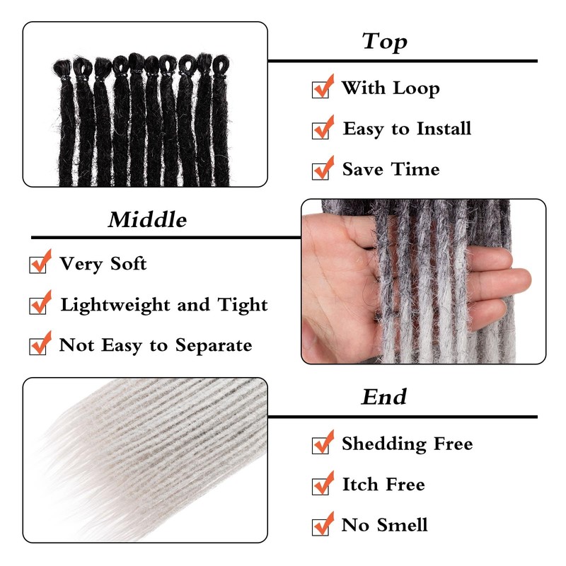 - 1.Material:100% handmade high quality synthetic fiber dreadlock extensions, 0.6 cm wide, easy to install. Looks like human hair.