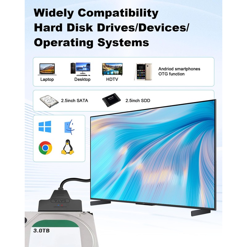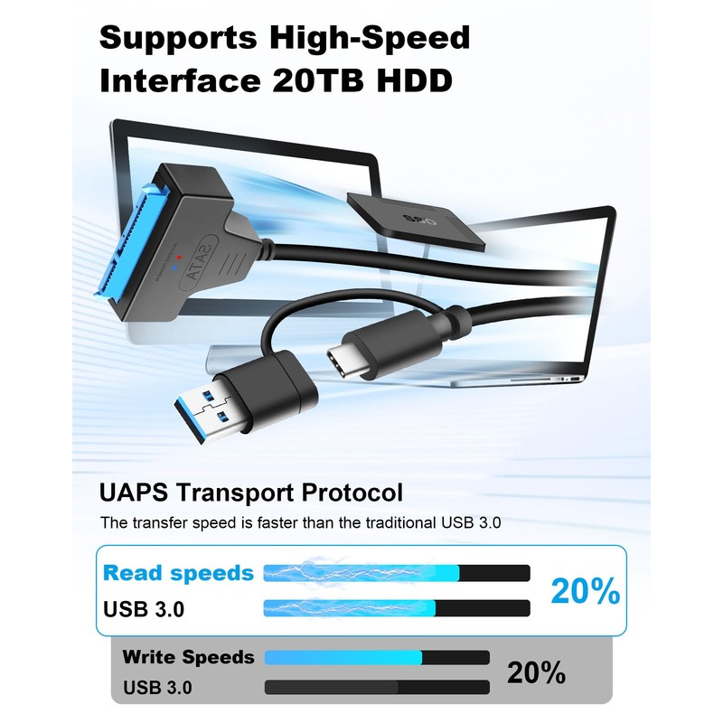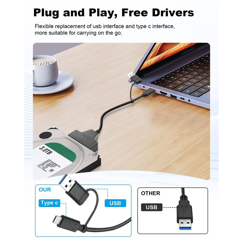 - Die 2-in-1-Schnittstelle passt sich flexibel an eine Vielzahl von Gerätetypen an und ist abwärtskompatibel mit USB 1.0-, 1.1-, 2.0- und SATA-Festplatten, was eine nahtlose Verbindung mit älteren Geräten gewährleistet. Ob es sich um einen Fernseher, einen HD-Player oder ein anderes Datenübertragungsgerät handelt, es kann problemlos verwendet werden, um verschiedene Anforderungen zu erfüllen.