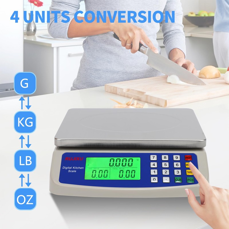 RUJIXU Large Digital Kitchen Scale 30KG Commercial Food Scale 66LB for Baking Bread Meat Stainless Steel Price Computing Scale LCD Display,Prep Counting Scale for Parts and Coins Adapter Included