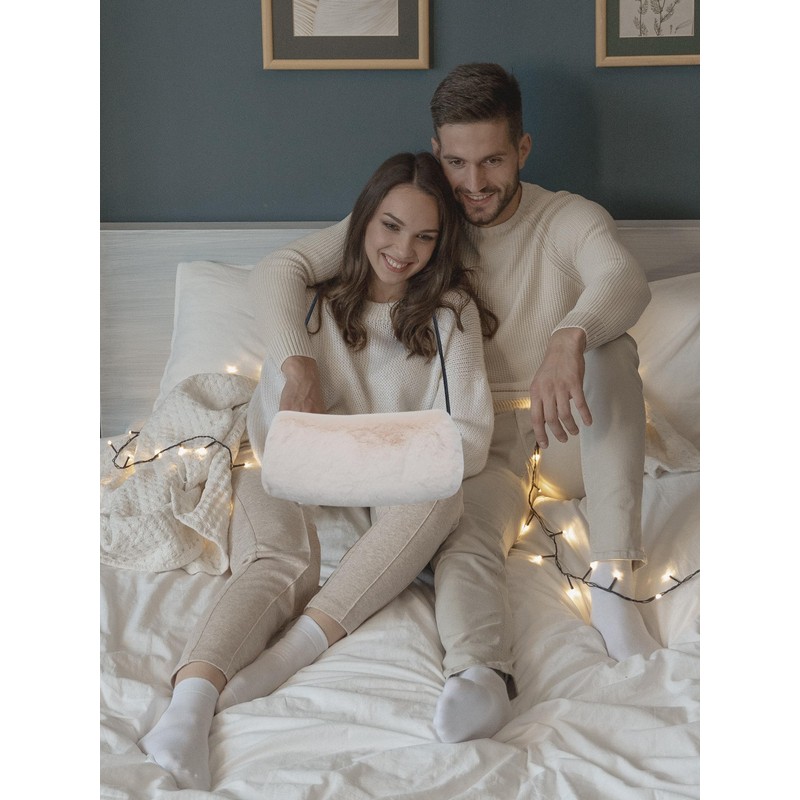 Rulala Fancy Faux Fur Hand Muffs for Women Winter Warm Arm and Hand Warmer with PU Leather Strap Include Pockets(Cream White)