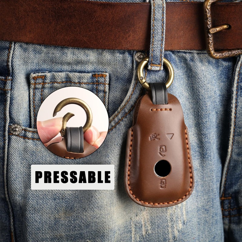 - 【Precise Fit】: Adopting sturdy metal key fob and quick-release buckle, easy to use, can firmly lock your car keys, all-around wrapping keys, effectively resisting minor impacts and scratches, preventing damage to the keys, but also will not affect the normal use of the keys, operating without stress. At the same time keep the key buttons accessible.