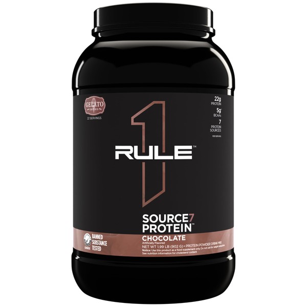 Rule 1 Proteins Source 7 Protein C Gelato-Inspired Flavors, Velvety Smooth Texture, 22g Sustained Protein with 10g EAAs from 7 Premium Sources (2 Pounds*, Chocolate)