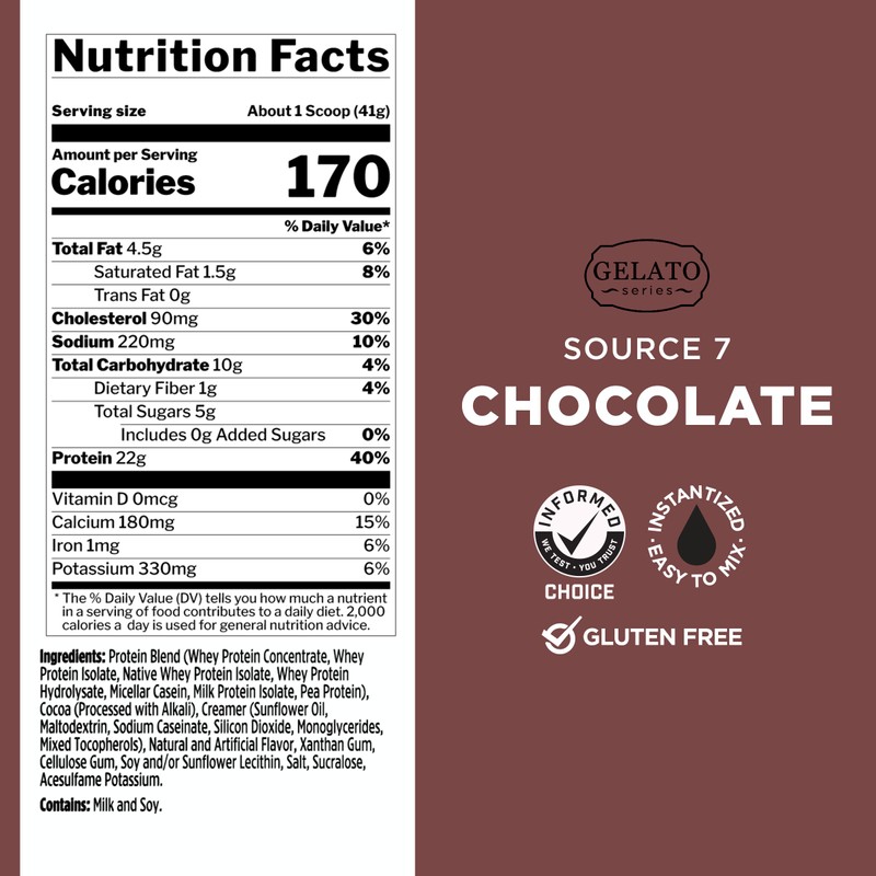 - Amazing Taste: Gelato-inspired flavors and an exceptionally creamy texture make drinking Source 7 Protein a dessert-like experience.