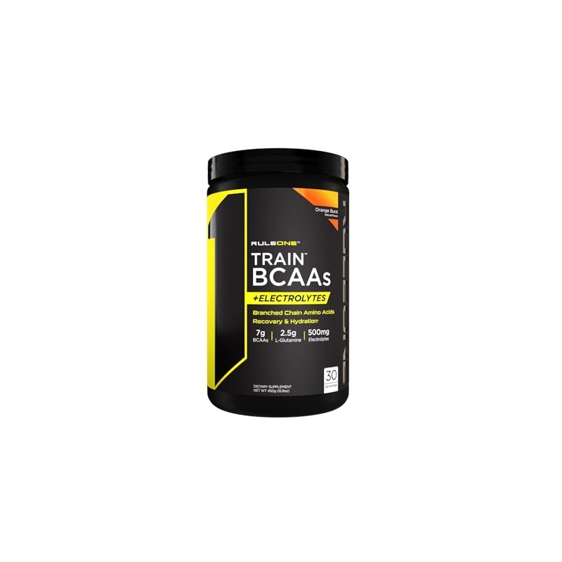 RULE ONE TRAIN BCAAS + ELECTROLITOS 30 SERVS 450 GRS SABOR ORANGE BURST