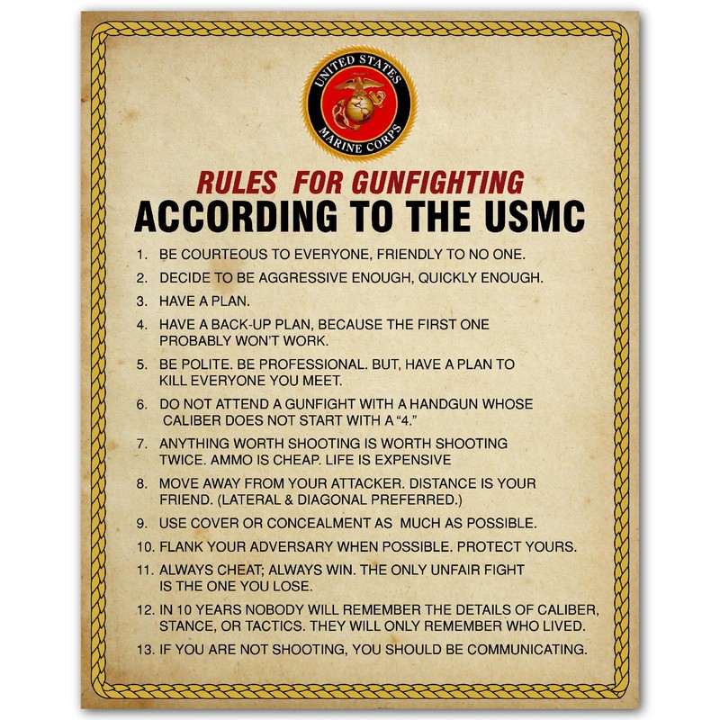 Rules For Gun Fighting - USMC Wall Decor Print, Patriotic Military Wall Art, Veterans Office Decor, Home & Classroom Decor (Unframed, 11 x 14 inches)