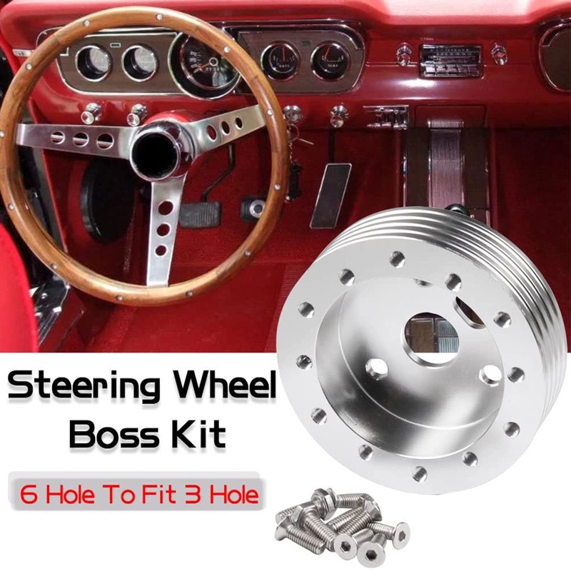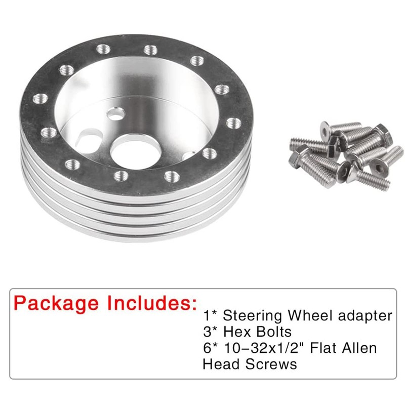 RULLINE 1" Steering Wheel Hub Adapter Conversion Spacer 6 Hole to 3 Hole Steering Wheel Adapter Grant Adapter Boss Kit Silver