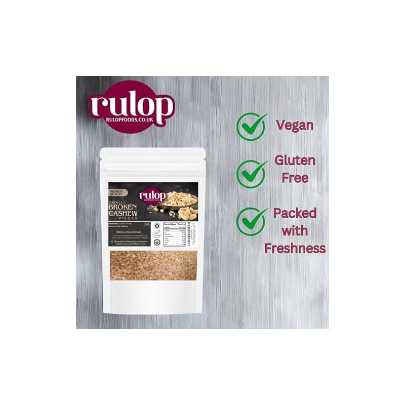 - Vegan and Gluten-Free: Rulop Broken Cashews are 100% vegan and gluten-free, making them a guilt-free addition to your diet.