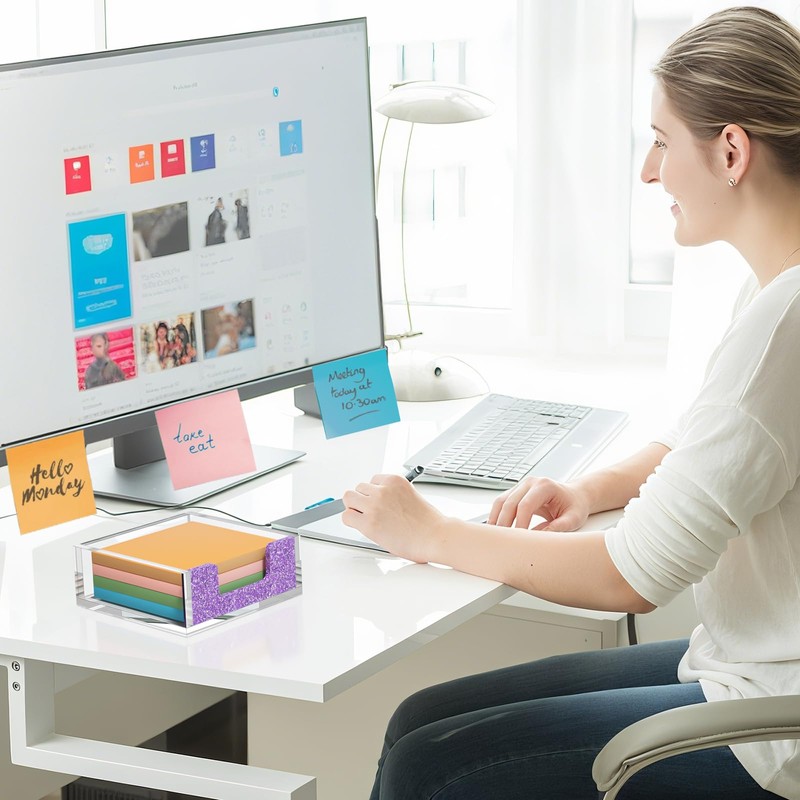 - COMPACT: acrylic sticky note holder for desk holds all your standard size note paper in one spot, as sticky note lover must-have acrylic desk accessories, it allows for efficient organization without cluttering your work area